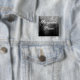A custom designated driver button with a spooky Halloween sky with misty trees along a dark haunted road, gothic ravens and a cloudy full moon.