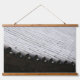 The polyester fabric displayed many wrinkles and several sharp creases throughout.  At the bottom of the tapestry, I noticed a bulge in the fabric because it was not pulled tight enough before being connected to the wooden boards.  It took me over an hour to spay water on the tapestry before putting it on an ironing board where I used a warm iron over a polyester cloth to remove the wrinkles and creases in the material.   I was able to get out the wrinkles and creases that made that tapestry look as beautiful as its picture.