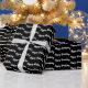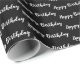 Designer happy birthday gift wrap in black and white. The text can be changed to suit any occasion. The black background can be customized to any colour.