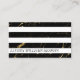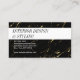 A high-fashion business card design featuring a luxe black marble with faux gold flecks and white striped background with your name in an elegant italic font. The black and white design is simple and chic for an elevated aesthetic for your brand. Great for interior designers, fashion stylists, boutiques and salons. © 1201AM CREATIVE