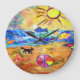 Order your designer block by Debbie Davidsohn for your home, office, apartment, or studio. The artwork shows a beach scene in brilliant colours, a little dog, and big fish in florescent colours. Customize this product by choosing the small clock, the larger round clock, or the square shaped clock. These make great gifts for almost any occassion. Great for beach themes and beach homes.