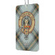Clan Bell écusson badge entouré d'une sangle et boucle sur l'arrière - plan tartan. Texte personnalisé des deux côtés.