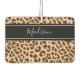 Gardez votre véhicule à l'air joli avec ce joli décorateur d'air pour empreinte de léopard girly personnalisé. Les deux côtés sont conçus avec un poster de animal brun et noir arrière - plan. Il a également votre nom en écriture manuscrite tendance blanche en lettrage au centre de bande horizontale noire. Cliquez sur l'option "personnaliser le modèle" et suivez l'invite.