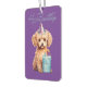 Celebrate a special day with this adorable poodle and birthday cake air freshener. Featuring a charming watercolor illustration of a fluffy poodle wearing a party hat, this design is perfect for any dog lover's birthday celebration. The vibrant purple background adds a festive touch, while the sweet cake with lit candles brings the birthday spirit to life. This unique air freshener will bring a smile to anyone's face and a pleasant scent to their car or home.
