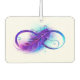 Infinity symbole with a beautiful feather painted in purple and blue bright colors on white background