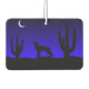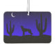 Scène désertique avec cactus et silhouettes de coyotes sous un ciel étoilé avec un croissant de lune.
