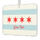 Air Freshener personnalisable avec drapeau de la ville de Chicago (plus grande ville de l'Illinois), drapeau rayé blanc et bleu clair avec quatre étoiles rouges