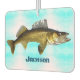Ce design présente un brochet doré au-dessus d'un arrière - plan aquatique.