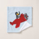 Serviette avec design avec illustration d'un pingouin volant un avion rouge ; illustré par Radka Kavalcova / MaxiHarmony