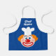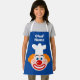 Dessin du chef clown amusant sur petit tablier sur mesure pour enfants. Personnalisez avec votre propre nom. Amusant design mime souriant. Idéal pour la cuisine, la boulangerie, l'art, l'artisanat, la peinture, les ateliers, les événements, Anniversaire, fête et plus encore. Bleu ou couleur arrière - plan personnalisée. Design clown mignon avec cheveux rouges et gros faux nez. Petit tablier de cuisine pour les enfants.
