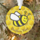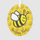 Caricature souriante d'abeilles volantes sur un arrière - plan sans soudure de ruche d'abeilles. Texte personnalisé des deux côtés.