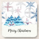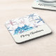 Ces images correspondent à une série de fournitures de fête pour une fête de Noël. Ces dessous de verre sont en paquet de six, sont en plastique et ont un dossier de liège. Le design est un flocon de neige, et un ciel étoilé, avec des arbres et des bonhommes de neige. Les mots peuvent être changés. Merci à Hungryjpeg et Creative Fabrica pour certains des éléments du design.