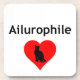 Dessous de verre avec le mot grec pour amoureux des chats, "ailurophile" et une silhouette de chat noir à l'intérieur d'un coeur rouge.