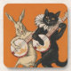 Partagez quelques rires avec ces dessous de verre oranges comportant l'art de l'artiste Nellie Murphy. Elle a créé cette image drôle d'un lapin et d'un chat de banjo-playing pour la couverture du magazine "de chat noir" en 1895. La peinture, avec un arrière - plan orange vibrant, est un exemple merveilleux de l'art anthropomorphe populaire vers la fin du dix-neuvième et du début du 20ème siècle.