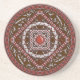 Ce mandala à thème Bélier est composé d'une pierre de jasper rouge entourée du symbole du signe, de la constellation et du symbole alchimique du feu parmi les fibres et les tissages.