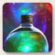 Ces dessous de verre portent une bouteille d'art.