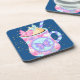 Dessous de verre avec une jolie tasse rose sur un arrière - plan bleu aux faux étoiles dorées. Joli dessous de verre pour toute occasion. Merci à Creative Fabrica pour certains des éléments du design.