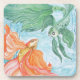 Peinture originale d'aquarelle de Sandra Gale de deux beaux poissons Siamais Fighting, ou betta fish nageant ensemble. Peints dans des couleurs pastel cool, ces poissons majestueux ont des nageoires flottantes qui flottent parmi les bulles d'eau pendant qu'ils duel et jouent.