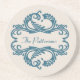 Dessous de verre chic Damask élégant et sophistiqué, arrière - plan de couleur beige douce et orné d'une élégante décoration sobre et fleurie dans le bleu foncé. Ce design moderne est facile à customiser avec votre propre texte. Cliquez sur "Customiser" pour trouver d'autres options de personnalisation.