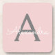 Dessous de verre en papier monogramme de couleur rose et gris clair simple Script. Cela fait le cadeau parfait de remise de diplômes, anniversaire, mariage, douche nuptiale, anniversaire, baby shower ou bachelorette pour quelqu'un qui aime le luxe glam et les styles chic.