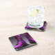 Ces dessous de verre ont des bottes de chaussures violettes sur eux.