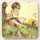 Dessous-de-verre Boy reading under tree with rabbits