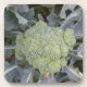 Ce magnifique dessous de verre de liège présente une photo détaillée d'une tête de brocoli poussant dans un jardin. Les fleurs vertes serrées sont entourées des grands feuilles extérieurs du légume.