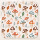 Motif automne adorable avec de mignons caricatures bleu, orange et marron champignons avec joues roses et visages heureux. Des feuilles verts, bleus, orange et crème ornent également ce décor. L'arrière - plan est une couleur crème pâle pour finir ce look d'automne.