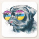 Caractéristiques de conception ce un carlin regardant par des lunettes de soleil une scène tropicale.