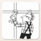 Dessous de verre en papier pour un échafaudeur. Illustration amusante de style dessin animé d'un scaffer avec échafaudage.