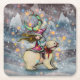 Dessous-de-verre Carré En Papier Elf Riding Polar Ours Noël Art