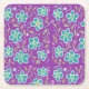 Dessous-de-verre Carré En Papier Fleurs vertes sur design pourpre