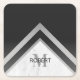 Dessous-de-verre Carré En Papier Marbre d'argent noir monogramme géométrique