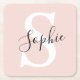 Dessous-de-verre Carré En Papier Nom personnalisé moderne Monogram Pastel Rose