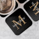 Créez votre propre dessous de verre carré rond noir personnalisé avec votre nom et votre monogramme personnalisés.