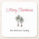 Tropical Beach Joyeux dessous de verre en papier de Noël, avec un dessin de palmiers et typographie de script. Avec le lettrage personnalisable, vous ajoutez vos propres informations. Un complément festif à vos vacances divertissantes.