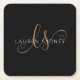 Dessous-de-verre Carré En Papier Script féminin Black Gold moderne Monogramme