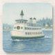 Célébrez la saison avec une touche de charme nautique. Cet élégant dessous de verre de Noël dispose d'un ferry classique décoré d'une couronne et d'un arbre de Noël festifs, naviguant à travers un port enneigé par un matin d'hiver.