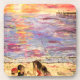 montre des enfants en quête de coquillages sur la plage au coucher du soleil à partir d'une aquarelle originale !