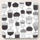 Motif d'automne avec diverses glands griffés en noir et blanc, illustration vectorielle.