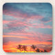 Un cliché paradisiaque d'un coucher de soleil tropical avec des stries de bleus et de roses dansant à travers le ciel le long de rayons de soleil orange pompeux avec un groupe de palmiers silhoués. Un bonheur rêveur inspirant.