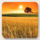 Vue grande-angulaire d'un coucher du soleil rouge sang au-dessus d'un champ de blé d'or. Arrière - plan générique - aucun emplacement