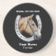 Des dessous de verre de grès avec une photo d'une jument de Gallois de châtaigne à l'intérieur d'un fer à cheval, sur un arrière - plan noir. Un cadeau utile d'affaires pour des maréchaux-ferrants ou des instructeurs d'équitation, vos clients n'oubliera jamais votre numéro de téléphone.