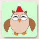 Ce superbe dessous de verre en liège présente un drôle de dessin d'une chouette de Noël aux yeux somnolents, un petit bec orange et de mignons petits pieds oranges. Le hibou est brun avec un ventre crème et porte un chapeau de Père Noël rouge et blanc prêt pour Noël.