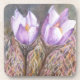 Beautés du printemps - ces deux beaux crocus mauves, mauves et blancs sont le signe d'un nouveau départ - jaillissant de couches d'herbes colorées d'orange, vert, jaune avec des nuances de rose