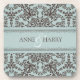 C'est les dessous de verre assortis des invitations bleues de damassé et Brown élégantes de mariage. Tout que vous devez faire est de changer le texte et d'écrire vos propres mots et information. Pour changer la police, la couleur et la taille des textes, ou ajouter plus de textes… que vous pouvez faire ainsi en la cliquant sur sur la "personnaliser".
