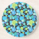 Un Dessous de verre de grès rond attirant, avec un motif excentrique de Cercles Bleus et Vert sur un arrière - plan noir. Faisant partie de la collection Posh & Painterly "Blue Moons", le design est tiré d'un collage de papier peint à la main par Judy Adamson.