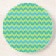 Dessous de verre rond et grès, avec un motif en zigzag de Chevrons Turquoise et Emerald Green sur un arrière - plan vert néon. Une partie de la collection Posh & Painterly 'Blue Moons', basée sur un collage de papier peint à la main par Judy Adamson.