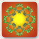 Un noeud Celtique vert dressé contre un dessous de verre de liège arrière - plan d'éclatement de soleil.