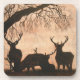 L'ensemble de six dessous de verre de liège avec "la silhouette de soirée de cerfs communs rouges" des illustrations originales par "Cathy Sharpe" peint en acryliques, groupe d'A des mâles frôlent dans le brouillard de soirée.